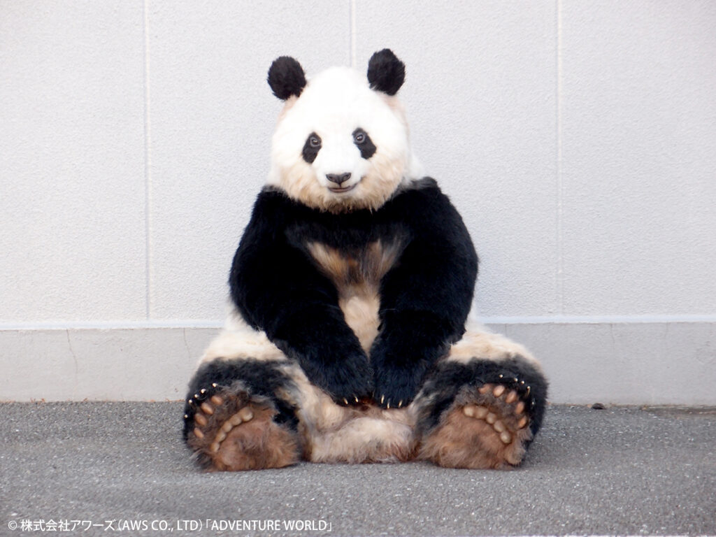 頭部にはパンダ特有の動作や表情を体現 する内部構成と機械技術を投入。鼻や唇などの皮膚には、リアルな質感と感触を表現する特殊シリコンを採用。全身を覆う体毛は、ハリウッドメジャー映画を手掛ける毛材メーカーと共同開発。毛の生え際部分は、手作業で一本一本植毛。
